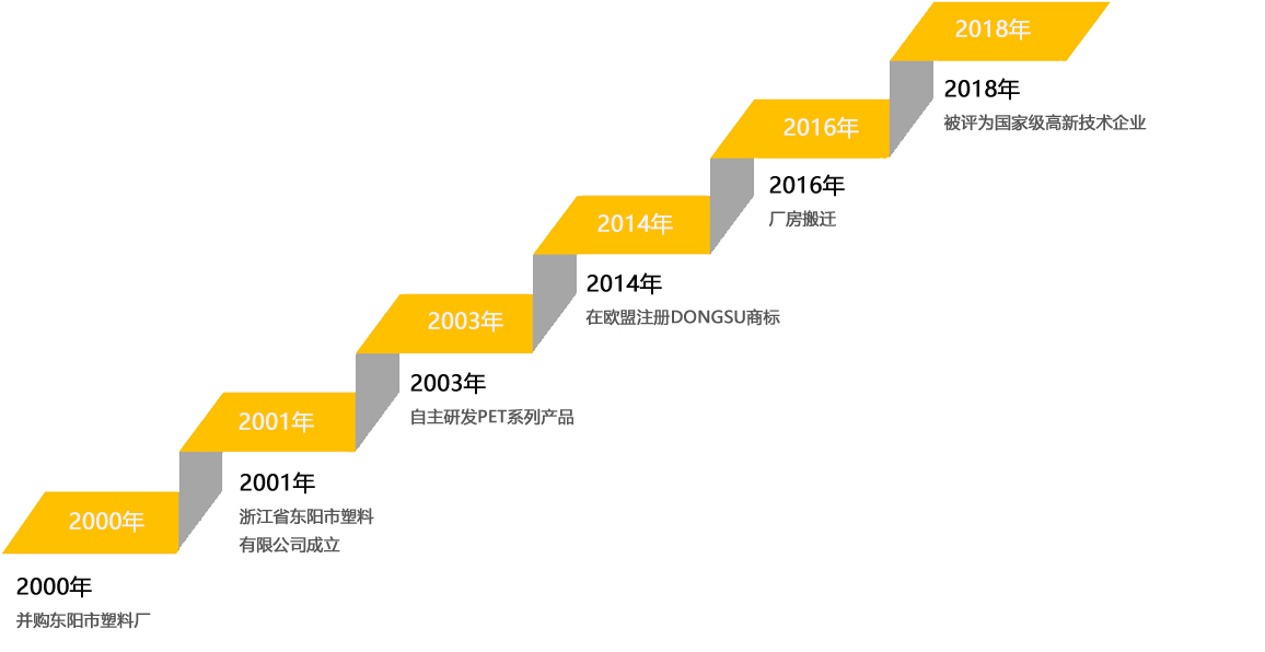 1994年公司从美国、瑞士引进当时最先进的生产PET产品流水线,正式开始专业生产PET系列产品。通过20多年的不断探索和发展,市场遍布五大洲六十多个国家和地区,与世界很多知名企业和品牌建立了友好合作,,如星巴克、DQ、迪士尼、农夫山泉、蒙牛、百威啤酒等。公司现有若干条流水线,几十台各类生产机组,年生产能力可达12亿套以上,形成了完整的集设计、制造、生产、销售与服务为一体的专业运行体系。